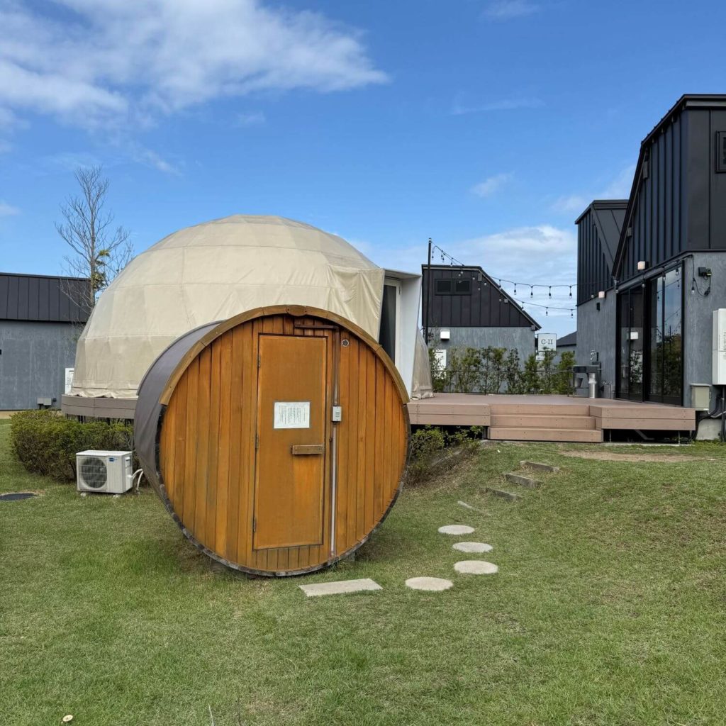 釣り大会を終えたあと、向かった先は「グランドーム千葉富津」。海と自然に囲まれた特別な空間で、会員制のプライベートヴィラとグランドームを貸し切り、贅沢な時間を過ごしました。サウナやプール、BBQ設備に加え、ゆったり浸かれる温泉まで揃った最高の環境で、普段の疲れを癒しながらリラックス。